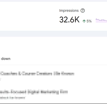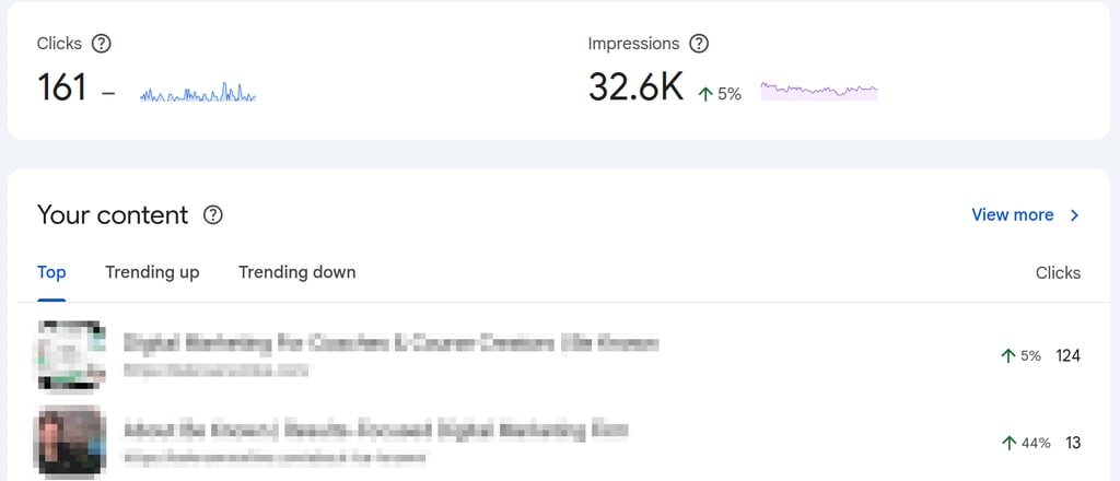Content performance metrics (impressions, clicks, CTR, rankings)