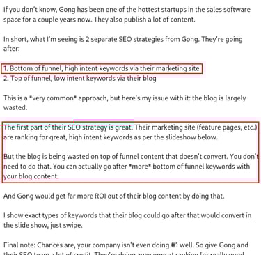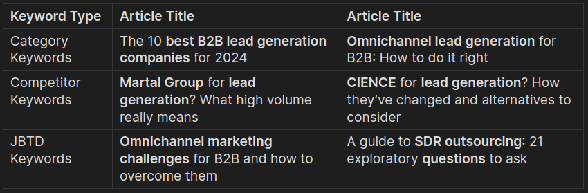 For instance, when writing about B2B appointment setting pricing I recognized that searchers weren't just looking for basic definitions and examples of pricing models—they wanted to understand the difference between pricing models as it relates to their business requirements.