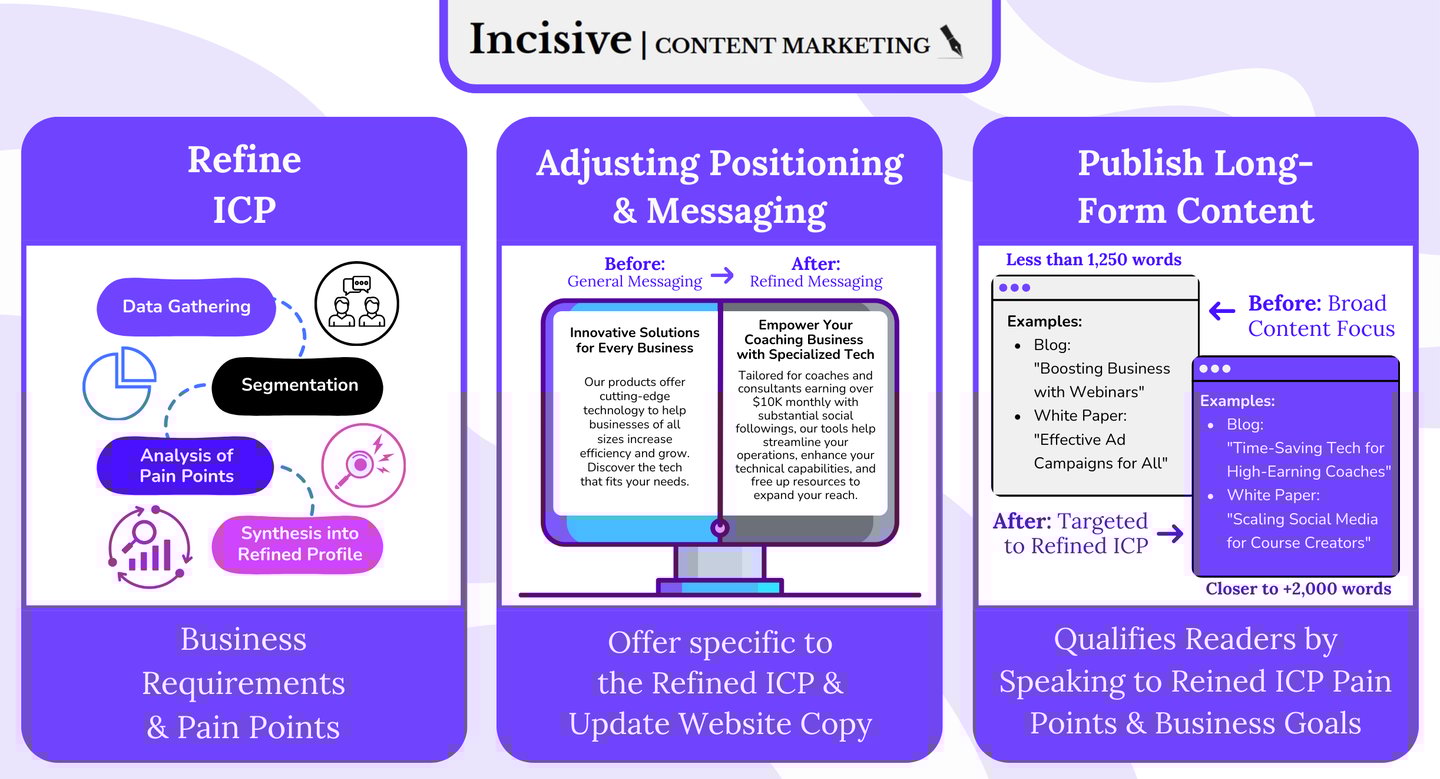 With a more refined ICP to cater to, my client could reposition his service offering, rework the messaging on his website, and target relevant keywords with in-depth blog posts.